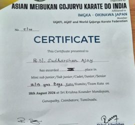 KARATE CHAMPIONSHIP under KATA CONGRATULATIONS ! We are proud of our Student R N Sudharshan Our Master R N Sudharshan Ajay of VIDYA VIKASINI OPPORTUNITY SCHOOL gets 2nd Place in 12 / 13 years Category Boys in  KARATE CHAMPIONSHIP under KATA, ASIAN MEIBUKAN GOJURYU KARATE DO INDIA ( Affiliated to […]